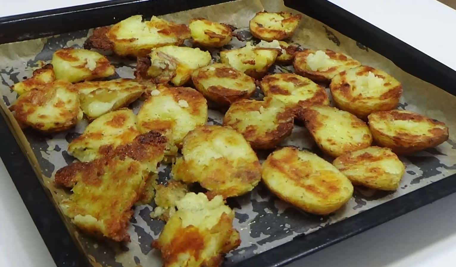 Επιστρέψτε το ταψί στο φούρνο για λίγα λεπτά για να πάρετε το άρωμα των πατατών.