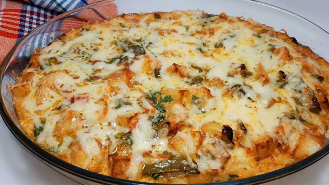 5. Ψήσιμο: Αδειάζουμε το μείγμα σε ένα καλά βουτυρωμένο ταψάκι. Ψήνουμε σε προθερμασμένο φούρνο στους 200°C για 30-40 λεπτά. Πέντε λεπτά πριν το τέλος, πασπαλίζουμε με το τριμμένο τυρί και αφήνουμε να λιώσει και να ροδίσει.