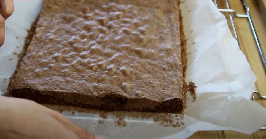 Μόλις ψηθεί, το βγάζω από το φούρνο και αμέσως από το ταψί (σηκώνοντας απαλά τα άκρα του χαρτιού ψησίματος) και έπειτα το βάζω σε μεταλλική σχάρα να κρυώσει.