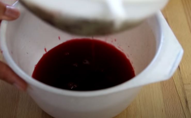 Βγάζω τα κεράσια από το ψυγείο και τα στραγγίζω σε κόσκινο και ρίχνω και την βότκα. Κρατάω το υγρό, για να μουλιάσω το κέικ μαζί του.