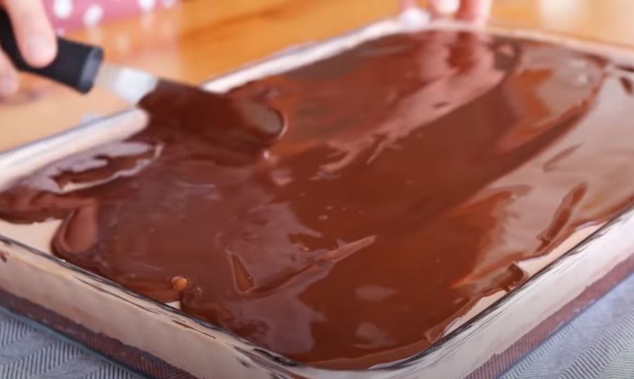 στη συνέχεια ρίξτε το γλασσο σοκολάτας και ανακατέψτε καλά το γλασσο σοκολάτας και να είναι κρύο πριν το τοποθετήσετε πάνω από την κρέμα.