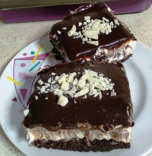 Πασπαλίζω με λευκές νιφάδες σοκολάτας πάνω από την πάστα!