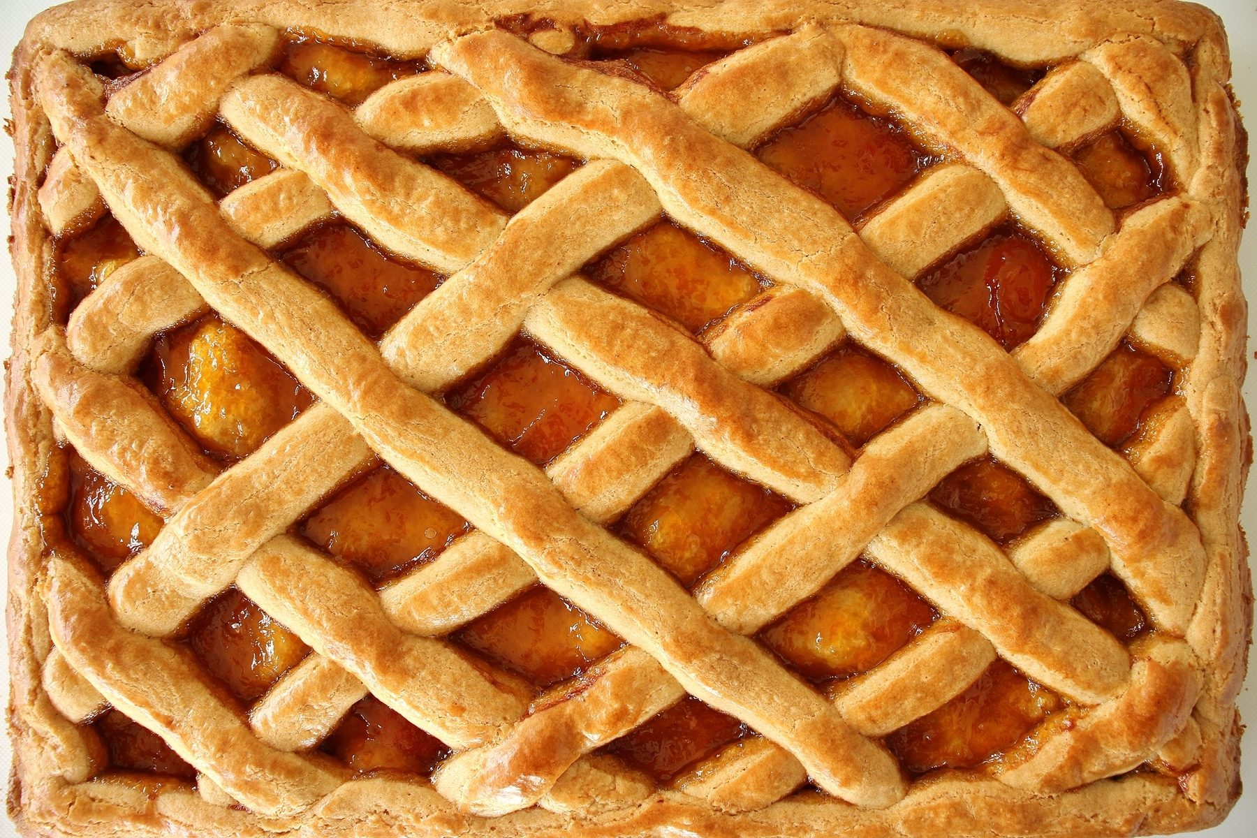 Ανακατέψτε την μαρμελάδα βερίκοκου για να μαλακώσει στην υφή της και απλώστε την ομοιόμορφα πάνω από τη ζύμη σχεδόν μέχρι τις άκρες, αφήνοντας περίπου μισο εκατοστό μέχρι τις ακμές που δεν καλύπτονται. Στη συνέχεια, πάρτε την υπόλοιπη ζύμη και