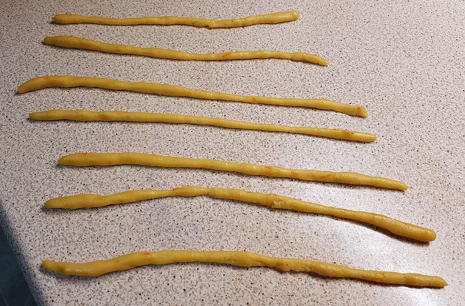 4. Βουτυρώνω το ταψάκι μου και κρατάω ένα κομμάτι ζύμης για να φτιάξω τα κορδόνια.
