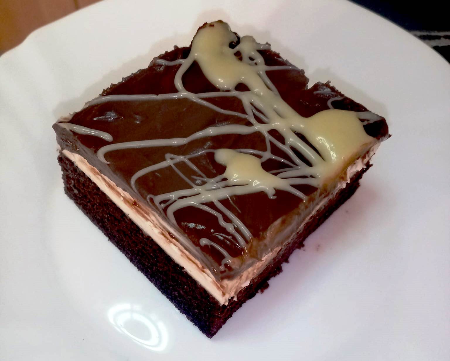 Μόλις βγει το παντεσπάνι από τον φούρνο, το σιροπιάζουμε με το κρύο σιρόπι. Αφήνουμε να κρυώσει εντελώς. Απλώνουμε την λευκή κρέμα πάνω από το παντεσπάνι.