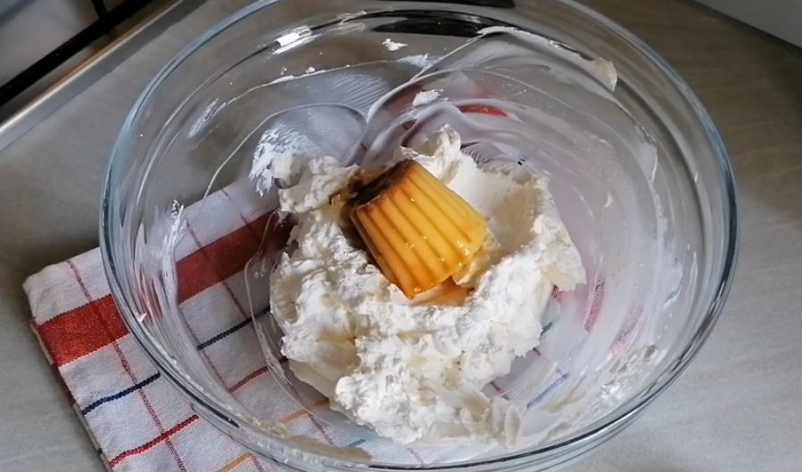 Προσθέτω το μασκαρπόνε και χτυπάμε με το μίξερ να ενσωματωθεί.