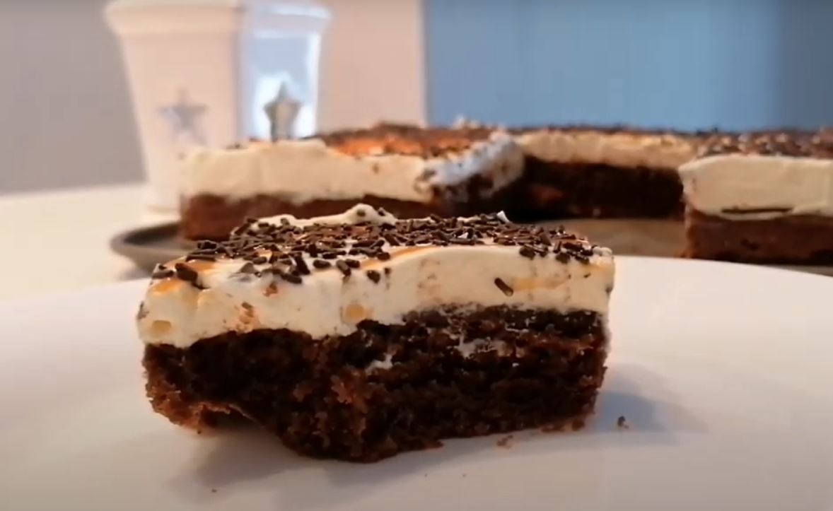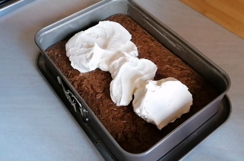Βουτυρώνουμε μια φόρμα (τσέρκι) 28 εκ και αδειάζουμε μέσα το μείγμα σοκολάτας το απλώνουμε και το ψήνουμε σε προθερμασμενο φούρνο στους 180 βαθμούς για 20 λεπτά (μέχρι να βγαίνει μία οδοντογλυφίδα καθαρή).