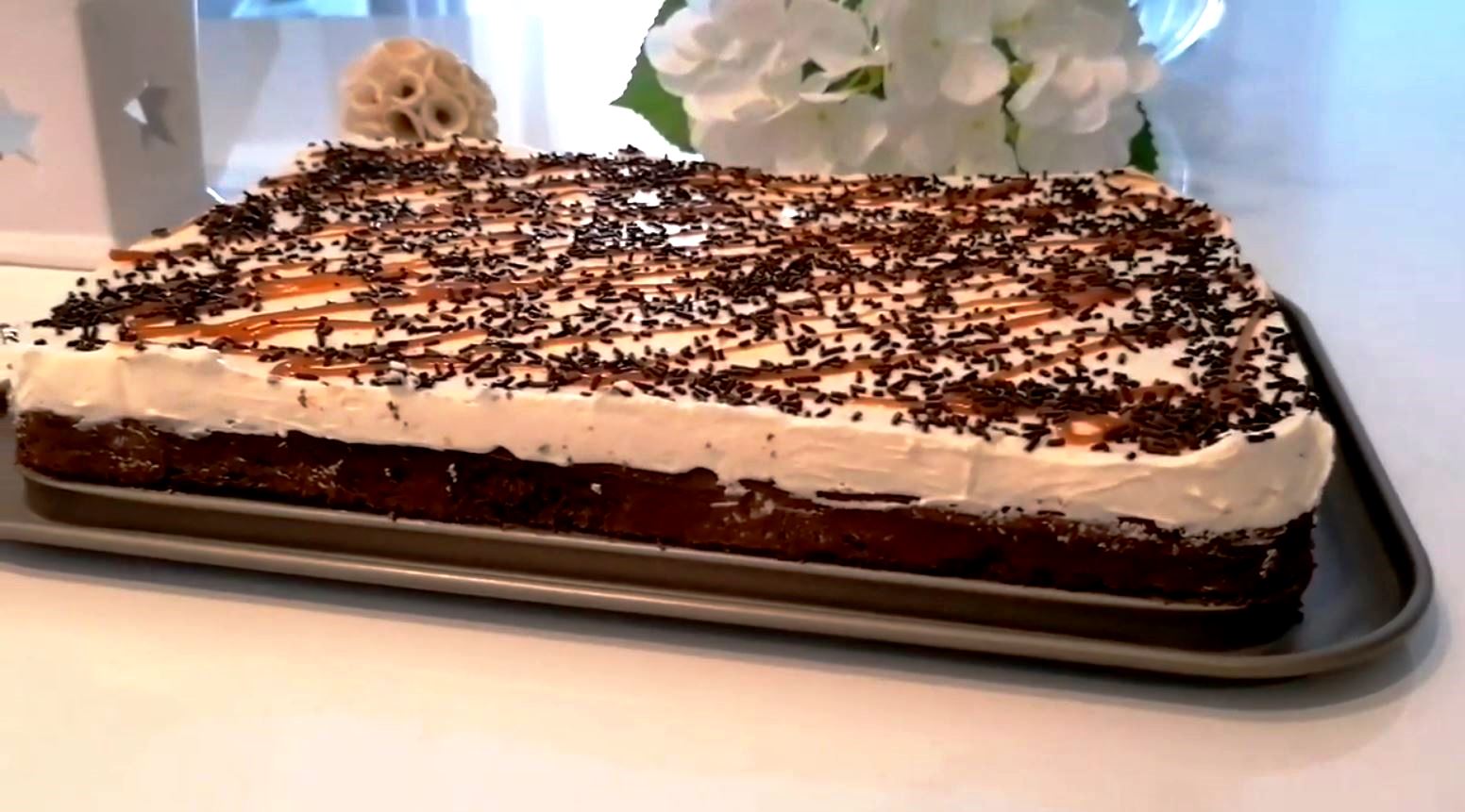 Βουτυρώνουμε μια φόρμα (τσέρκι) 28 εκ και αδειάζουμε μέσα το μείγμα σοκολάτας το απλώνουμε και το ψήνουμε σε προθερμασμενο φούρνο στους 180 βαθμούς για 20 λεπτά (μέχρι να βγαίνει μία οδοντογλυφίδα καθαρή).