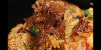 Πασπαλίζουμε από πάνω λίγο τυρί και βάζουμε στο φούρνο για 5 λεπτά, στους 200°C. Στη συνέχεια το αφαιρούμε και το σερβίρουμε στο τραπέζι.