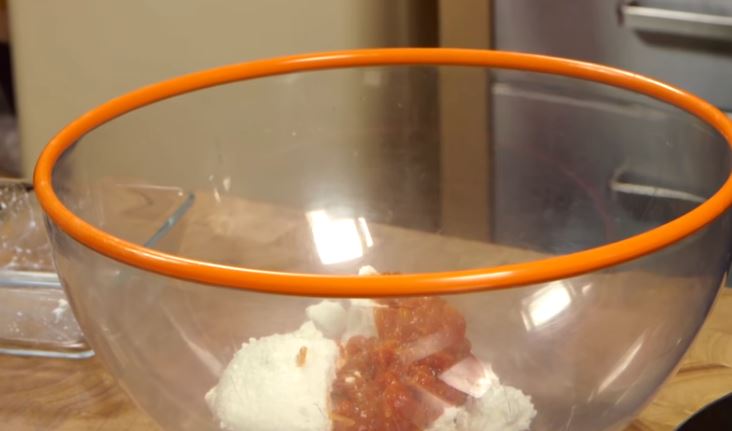 Σ ένα μεγάλο μπόλ βάζουμε την ρικότα προσθέτουμε λίγο από την σάλτσα μας και ανακατεύουμε.