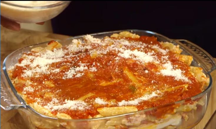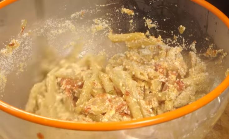 Στη συνέχεια προσθέτουμε τις πένες ρίχνουμε λίγη παρμεζάνα και ανακατεύουμε.
