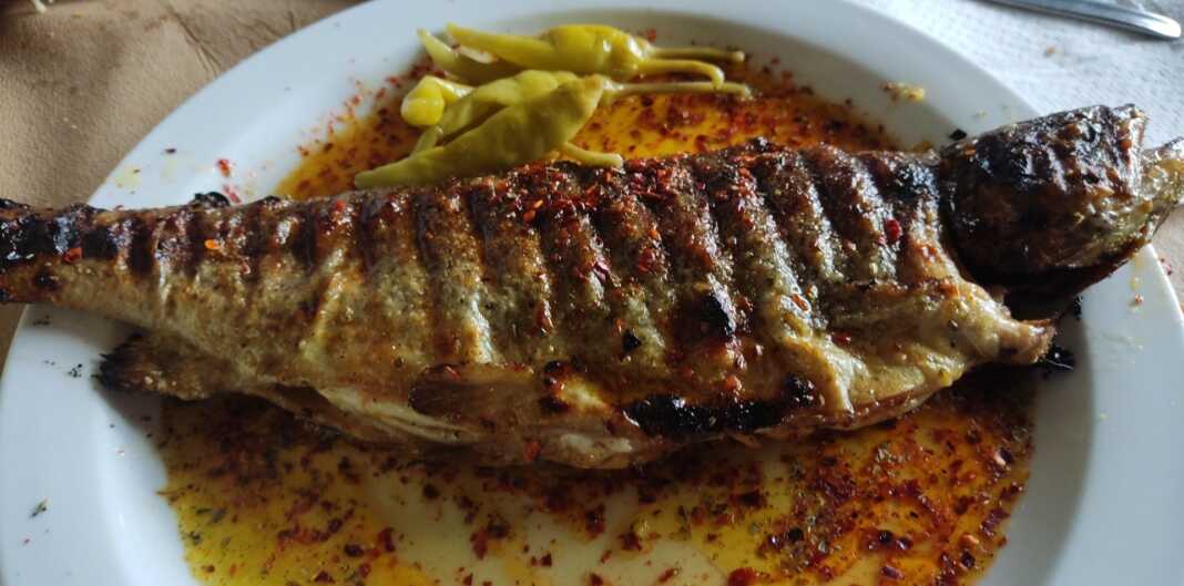 Τοποθετούμε τις πέστροφες στη σχαρα μας και ψήνουμε 5′ από κάθε πλευρά