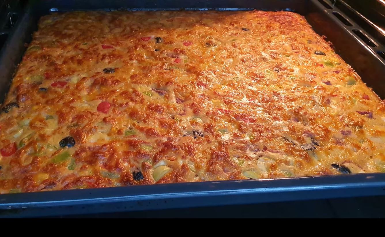 Λαδώνουμε το ταψί του φούρνου αδειάζουμε το μείγμα