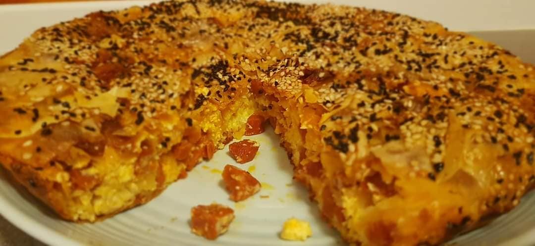 Πίτα με λουκάνικο τσόριθο και κατσικίσιο τυρί