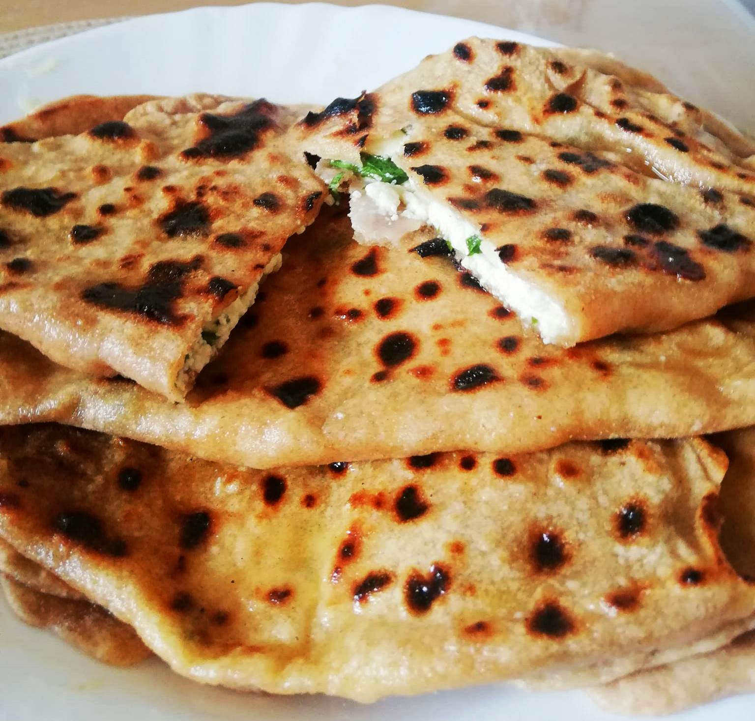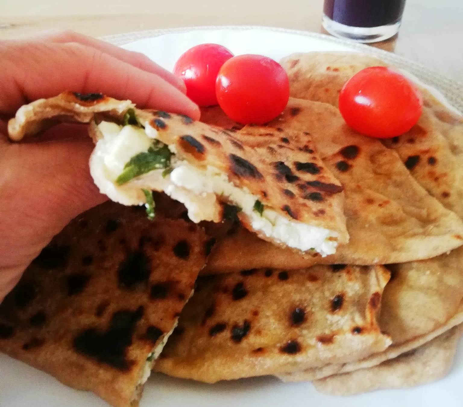 Χωρίζουμε σε 6 μέρη ανοίγουμε, βάζουμε γέμιση και διπλώνουμε.