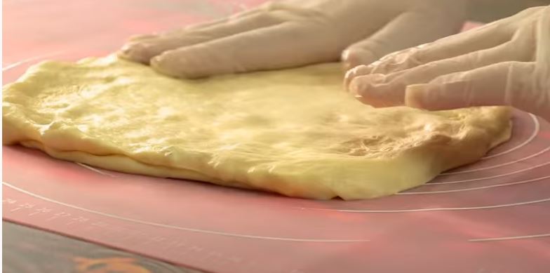 Βγάζουμε την ζύμη στο πάγκο της κάνουμε κάνα δυο διπλώματα και μετά χωρίζουμε την ζύμη σε 10-11 κομμάτια.