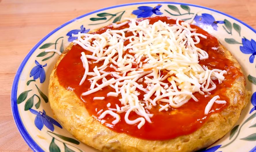 Μόλις τελειώσετε, βγάλτε το σε ένα πιατο και απλώστε την σάλτσα για πίτσα, ζαμπόν και πιπερια(εγω δεν έβαλα γιατι δεν ειχα προχειρα), το τυρί μοτσαρέλα από πάνω