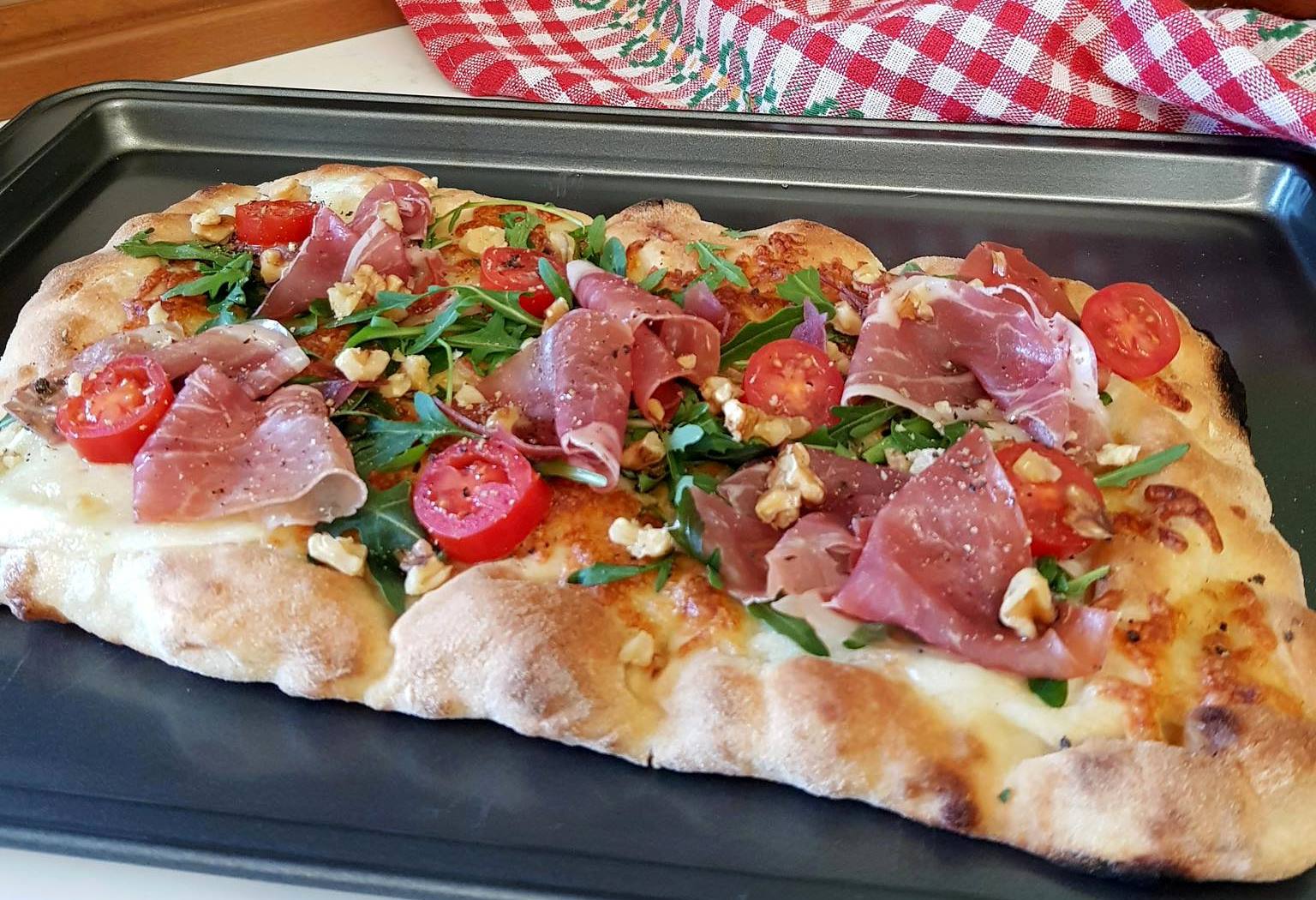 Φτιάξτε αφράτο και μοσχομυριστό ψωμί ή βάση για πίτσα με σπιτικό προζύμι, γεμιστό με φρέσκα υλικά. Μια απολαυστική συνταγή για μία ελαφριά πίτσα!