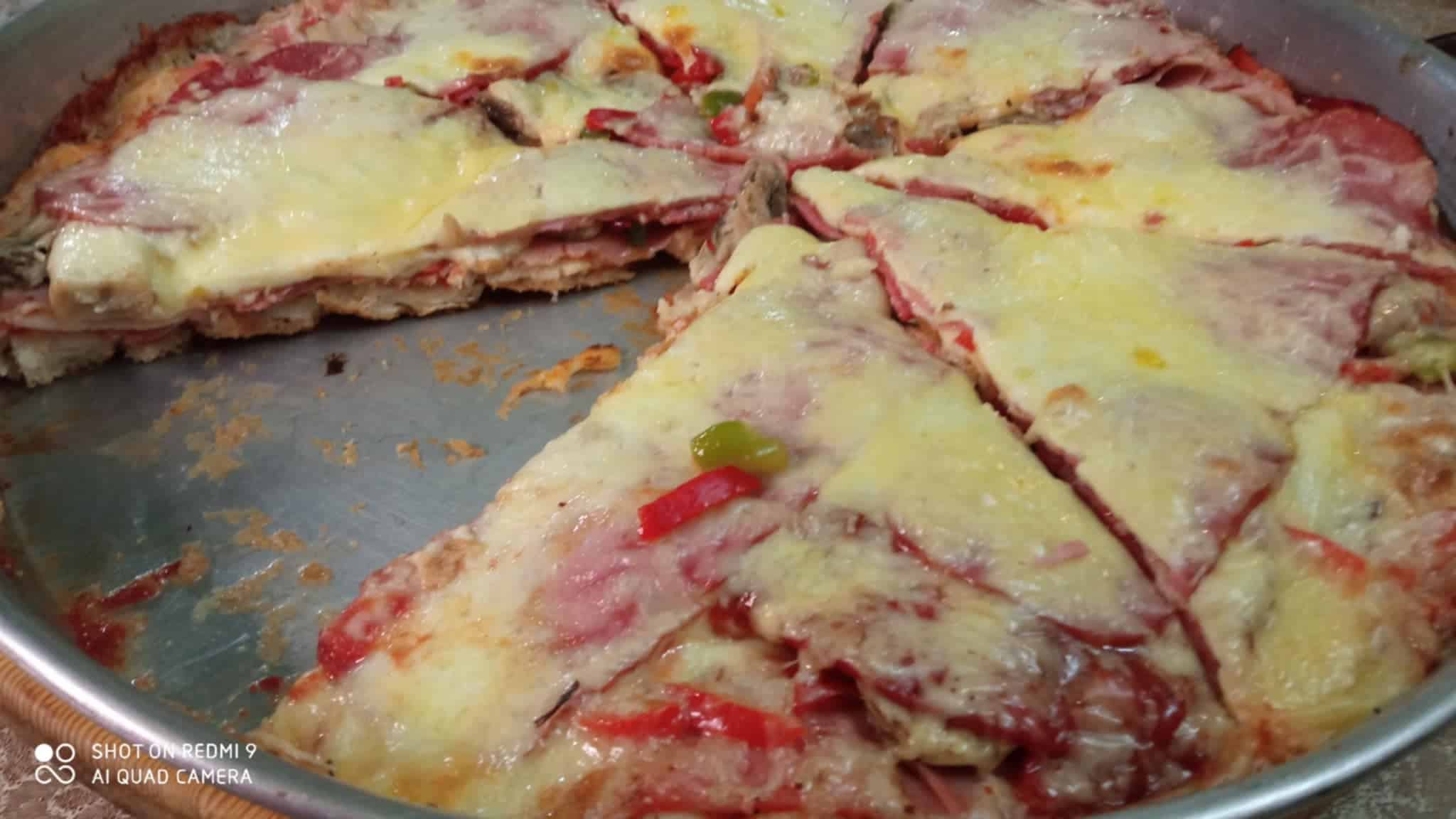 Προθέρμανε τον φούρνο στους 200°C και ψήσε την πίτσα για περίπου 25 λεπτά, ή μέχρι να ροδίσει το τυρί και η βάση να είναι τραγανή.