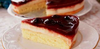 Αδειάστε το γλάσο πάνω στην κρέμα γιαουρτιού και βάλτε την τούρτα ξανά στο ψυγείο για τουλάχιστον 4 ώρες, ιδανικά όλη τη νύχτα.