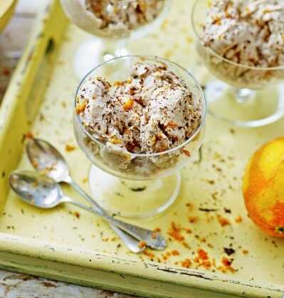 Καταψύξτε το μείγμα σκεπασμένο σε κατάλληλο δοχείο για περίπου 3 ώρες. Κάθε ώρα, βγάλτε το, χτυπήστε με σύρμα και μετά επιστρέψτε στον καταψύκτη. (Εάν έχετε παγωτομηχανή, παραλείπετε αυτή τη διαδικασία).