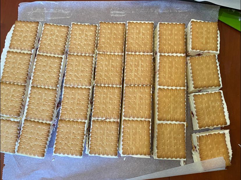 Πριν το σερβίρουμε, μπορούμε να βουτήξουμε τις άκρες των σάντουιτς σε λιωμένη κουβερτούρα και τρούφα (προαιρετικά).