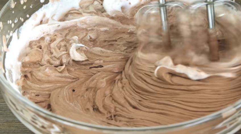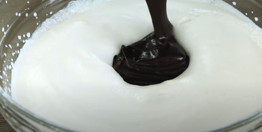 Προσθέτουμε το μείγμα της σοκολάτας μέσα στη σαντιγύ και χτυπάμε με το μίξερ να ενωθούν τα υλικά μας.