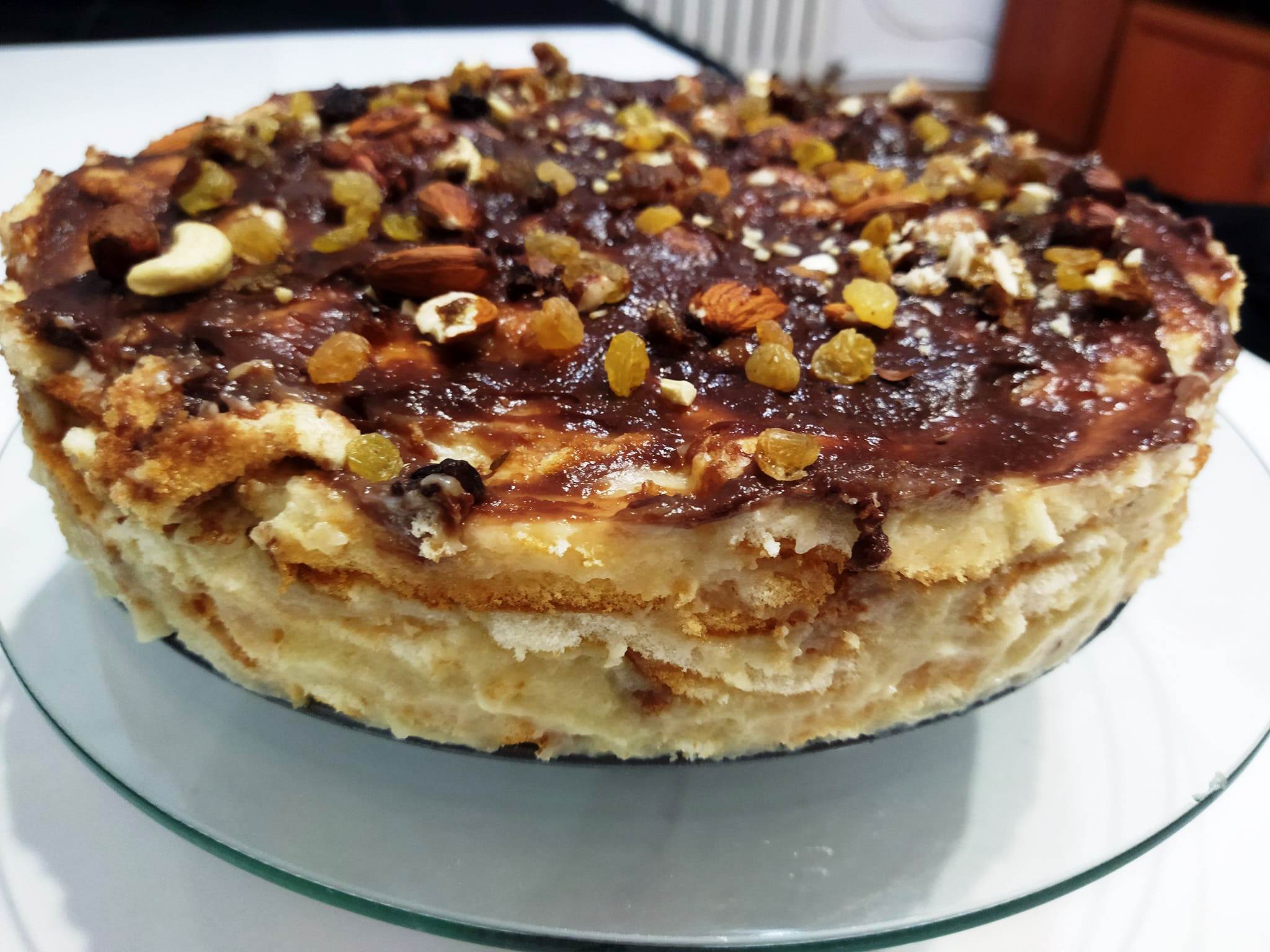 Αραδιάζουμε και τακτοποιούμε από πάνω με τα παντεσπάνια. Έτσι, μια σειρά κρέμα, μια σειρά από παντεσπανι