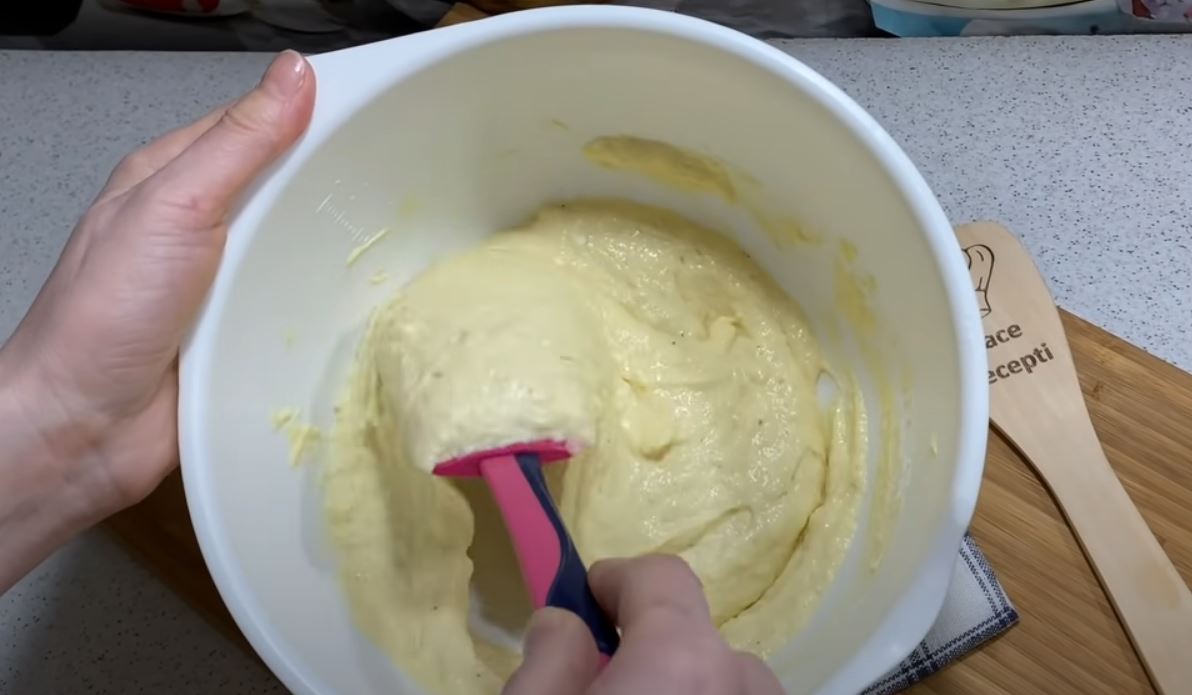 Σ ένα μεγάλο μπολ σπάμε τ αυγά και τα χτυπάμε με το σύρμα, προσθέτουμε το λάδι, το γιαούρτι και συνεχίζουμε ν ανακατεύουμε.