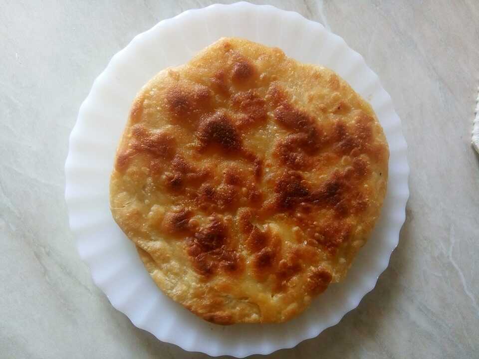Αλείφετε την πίτα με λάδι και την ψεκάζετε με νερό.Την ψήνετε σε αντικολλητικό τηγάνι αλευρωμενο ελαφρά με λάδι. Πρωτα από την μία πλευρά και ύστερα από την άλλη.
