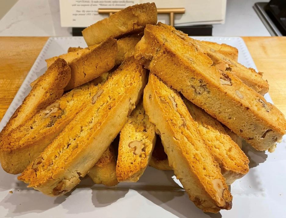 Μου ζεσταίνει την καρδιά που η θεία του πατέρα μου έσωσε και μοιράστηκε τις αγαπημένες συνταγές της οικογένειάς μας επιτρέποντάς μου να επανασυνδεθώ με τα αγαπημένα μου παιδικά χρόνια. Προσπάθησα να αναδημιουργήσω τη συνταγή της για τα παξιμάδια, βγήκαν νόστιμα!