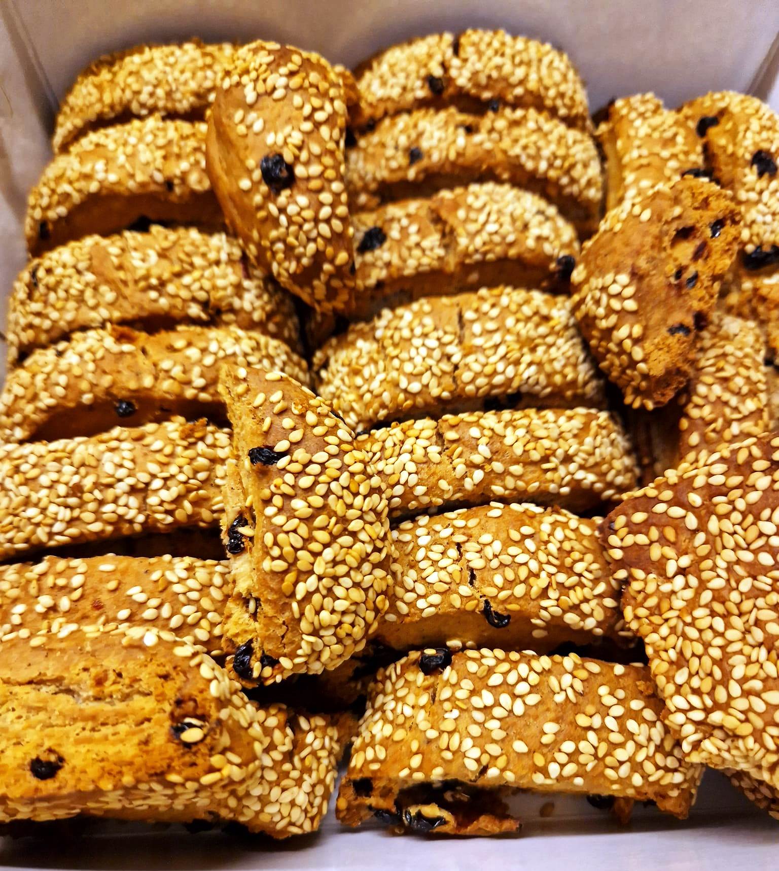 Αφού κρυώσουν, τις φετούλες με πολύ προσοχή με τα χέρια, όχι με μαχαίρι, και τις ξαναψήνουμε στους 130 βαθμούς με αέρα,