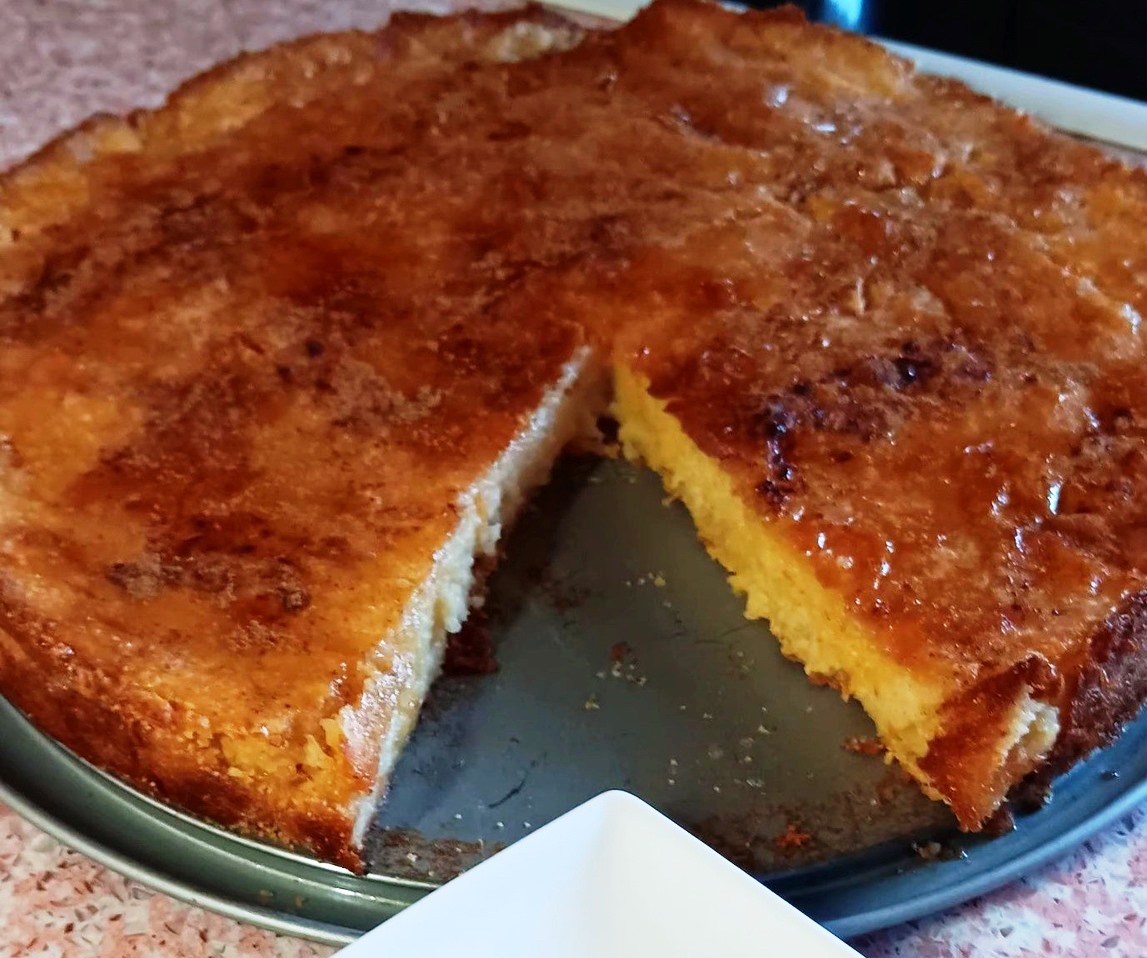 Ψήστε σε προθερμασμένο φούρνο στους 180 βαθμούς Κελσίου, με αντιστάσεις πάνω-κάτω, για περίπου 50 λεπτά, ή μέχρι να ροδίσει η επιφάνεια, ανάλογα με τον φούρνο σας. Αφού ψηθεί, αφήστε το γλυκό να κρυώσει καλά για περίπου μία ώρα πριν το σερβίρετε. Μπορείτε να το απολαύσετε πασπαλισμένο με κανέλα ή περιχυμένο με μέλι για μια μοναδική γευστική εμπειρία.