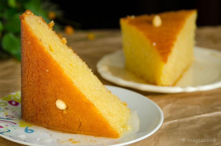 Το βάζετε στον φούρνο και το ψήνετε στη μεσαία σχάρα μέχρι να ροδίσει πολύ καλά για να ρουφήξει σωστά το σιρόπι. Θα χρειαστεί περίπου 40 – 45 λεπτά. Δεν ανοίγετε τον φούρνο πριν περάσουν τα πρώτα 30 λεπτά.