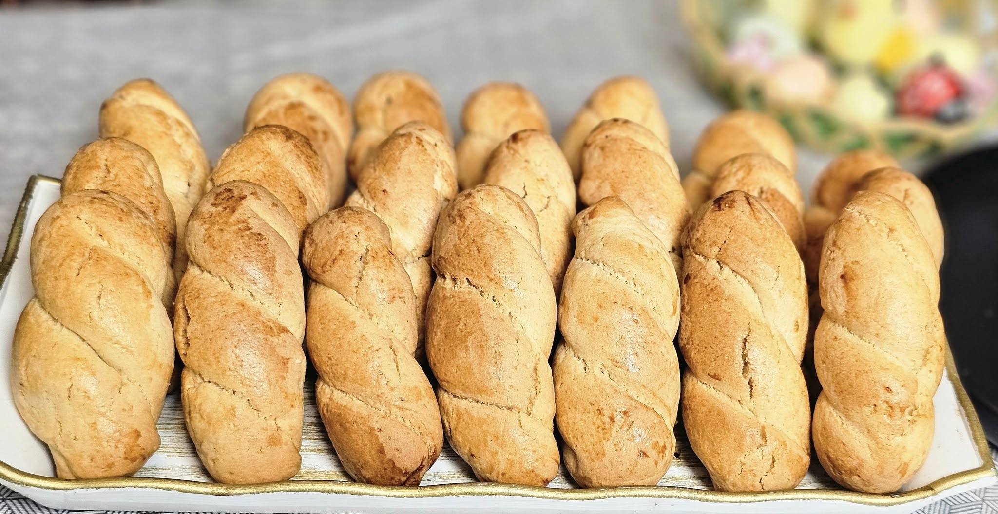 Πλάθουμε τα κουλουράκια το κάθε κουλουράκι και εγώ το φτιάχνω 30 γραμμάρια το σχέδιο όπως θέλει ο καθένας