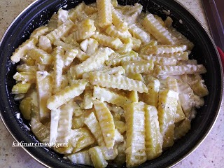 Βάλτε τις καθαρισμένες, πλυμένες και κομμένες πατάτες σε αλατισμένο νερό.