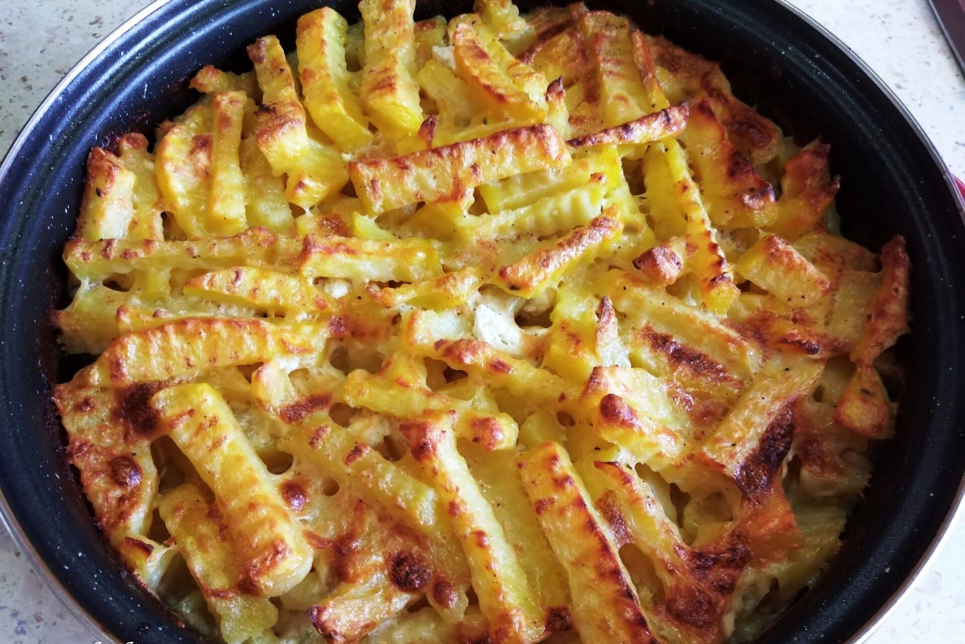 Προσθέστε σε ένα μπολ μεγάλο στις πατάτες το λάδι την κρέμα γάλακτος , το τριμμένο κίτρινο τυρί το τυρί φέτα, το μαύρο πιπέρι, το κύμινο και το σκόρδο.