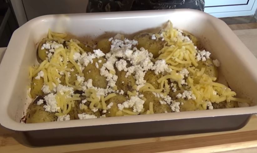 Ψήνουμε σε προ θερμασμένο φούρνο στους 220 βαθμούς για 50 λεπτά. Στη συνέχεια, βγάλτε τα από το φούρνο και πασπαλίστε τα με το τεμαχισμένο τυρί και το τριμμένο κίτρινο τυρί