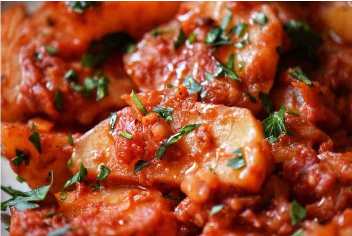 Πατάτες Φούρνου σε σάλτσα ντομάτας