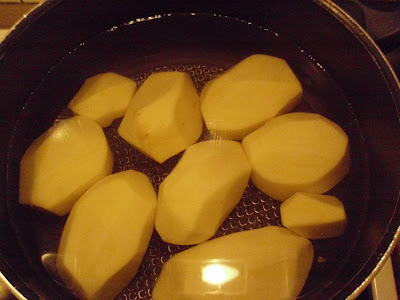 Βράζουμε τις πατάτες σε μπόλικο νερό να μαλακώσουν