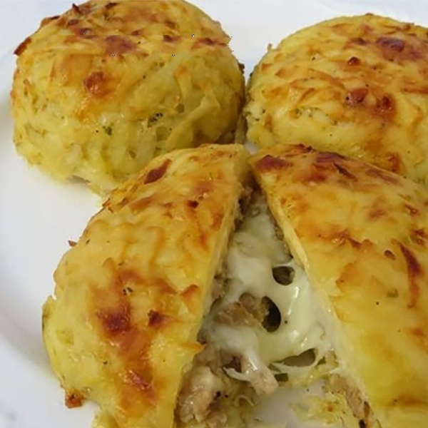 Ανασηκώνουμε τις άκρες της μεμβράνης και την τυλίγουμε σχηματίζοντας μπαλάκια πατάτας, όπου στο κέντρο θα υπάρχει κιμάς με τυρί.