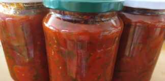 Καθαρίζουμε τις πιπεριές και τις κόβουμε σε λωρίδες.