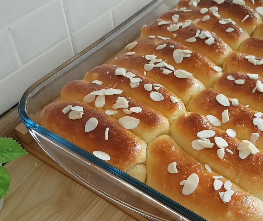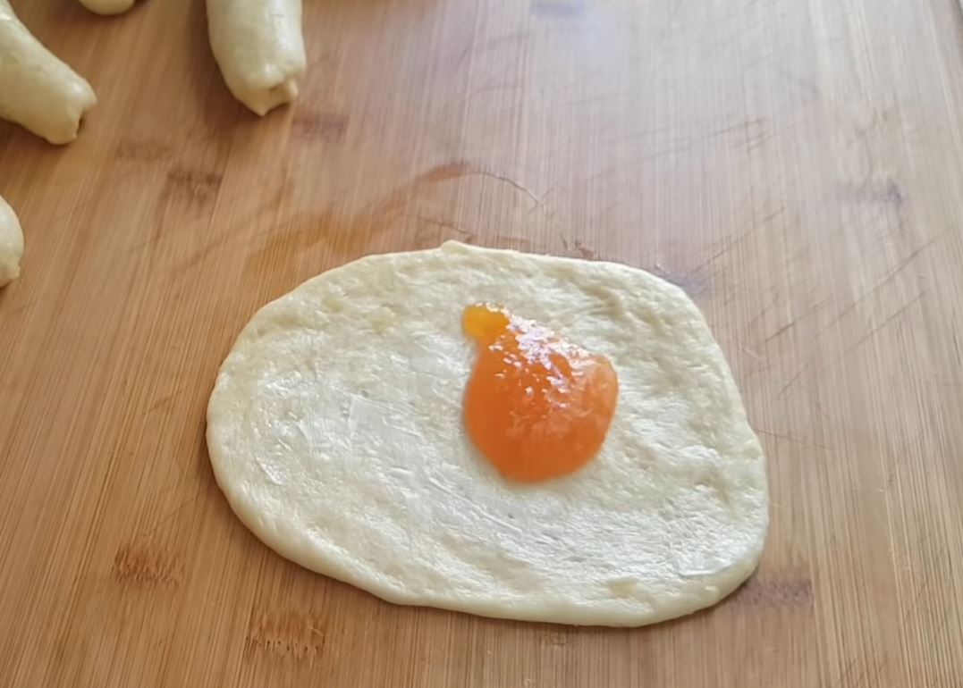 Μόλις τα βγάλουμε τα αλείφουμε με μαρμελάδα και πασπαλίζουμε με αμύγδαλο