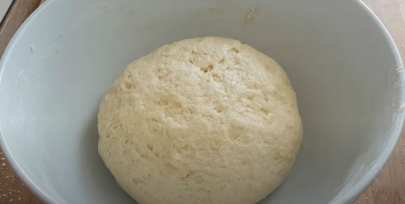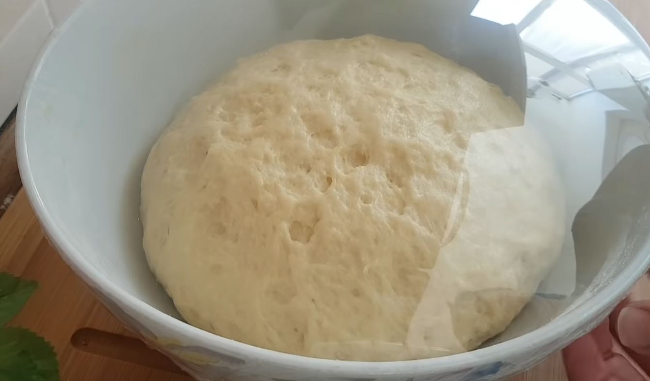Μόλις η ζύμη είναι έτοιμη σκεπάζουμε με μεβράνη και την αφήνουμε στην άκρη για 30 λεπτά.