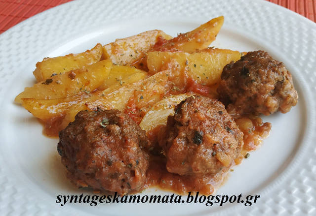 Πατατούλες Ζουμερές με Κεφτεδάκια στον Φούρνο