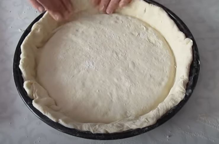 Αλευρώνουμε μία επιφάνεια και ζυμώνουμε την ζύμη καλά. Χωρίζουμε την ζύμη σε 2 μπάλες και ανοίγουμε με τον πλάστη τα ζυμαράκια στο μέγεθος του ταψιού μας(να καλύπτει και τις πλευρές του ταψιού) που έχουμε βουτυρώσει πρώτα.