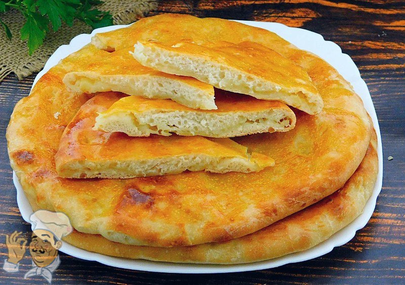 Ισιώστε τη ζύμη με τα χέρια σας σε ένα φύλλο, βάλτε μια μπάλα γέμιση στο κέντρο. Μαζέψτε τις άκρες προς τα πάνω και το κεντρο ώστε η πατάτα να είναι μέσα. Πιεστε με τα χερια ξανά απαλά  ανοιξυν σε πιτα διάμετρο 20-22 εκ.