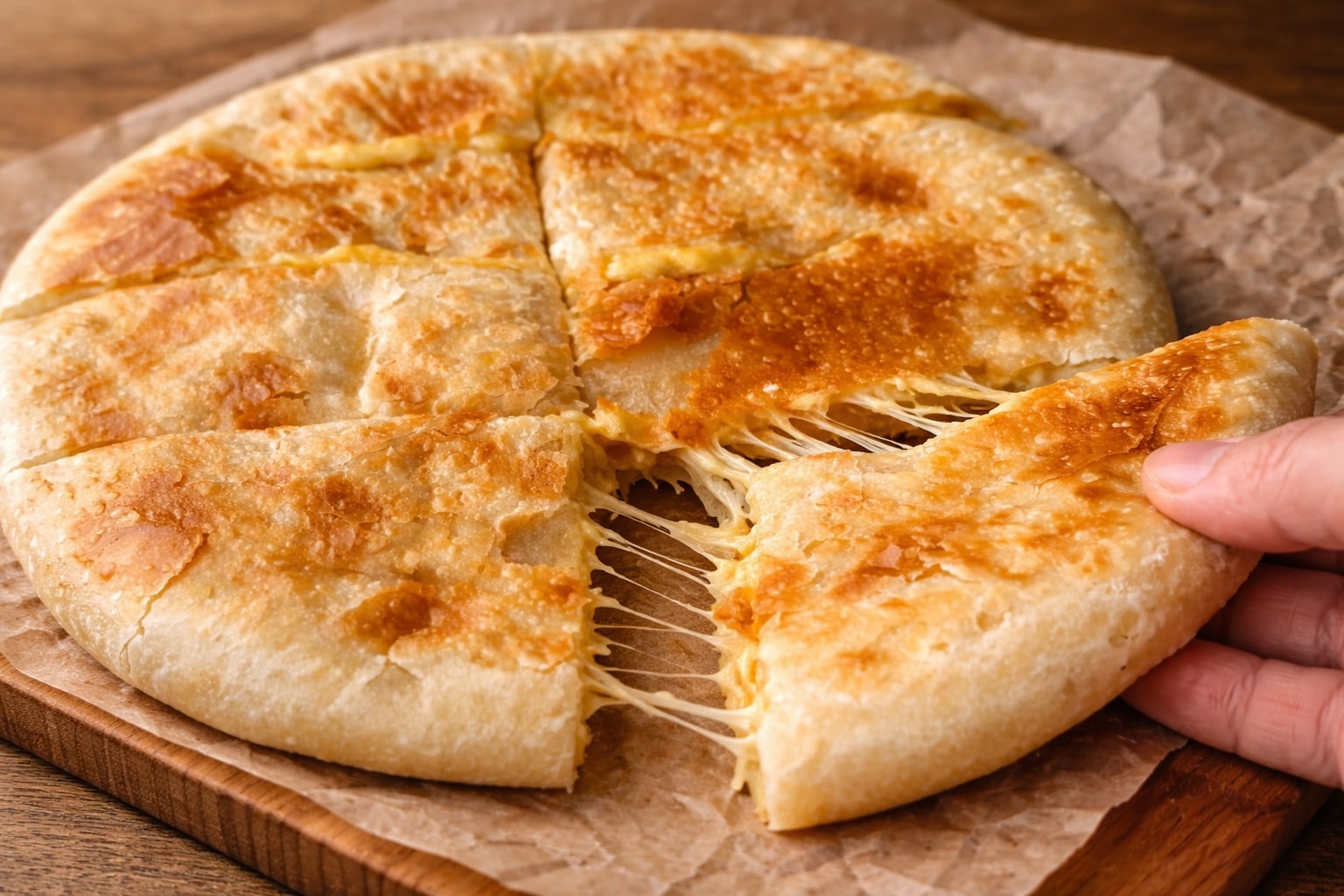 Φτιάξτε πανεύκολο πατατόψωμο γεμιστό με μοτσαρέλα στο τηγάνι χωρίς αυγά και χωρίς φούρνο Μια γρήγορη και οικονομική συνταγή που θα λατρέψουν μικροί και μεγάλοι