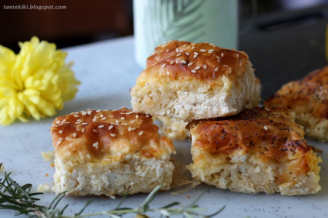 1- Προαιρετικά, μπορούμε να αλλάξουμε τα υλικά, χρησιμοποιώντας μόνον φέτα και όχι ανθότυρο, σπανάκι, κολοκύθι, πράσο ή ζαμπόν.