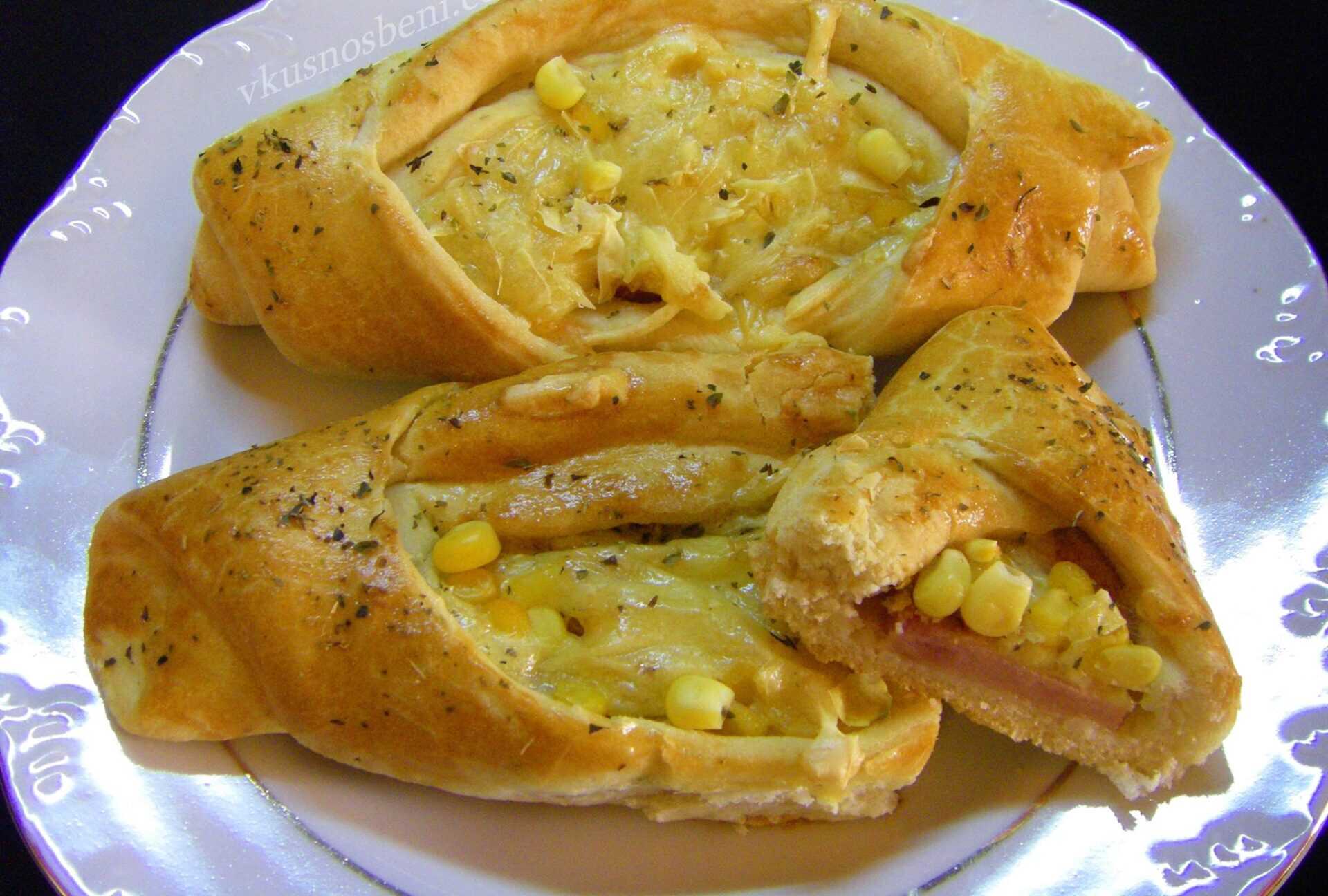 Πεινιρλί με ζαμπόν, καλαμπόκι και κίτρινο τυρί.